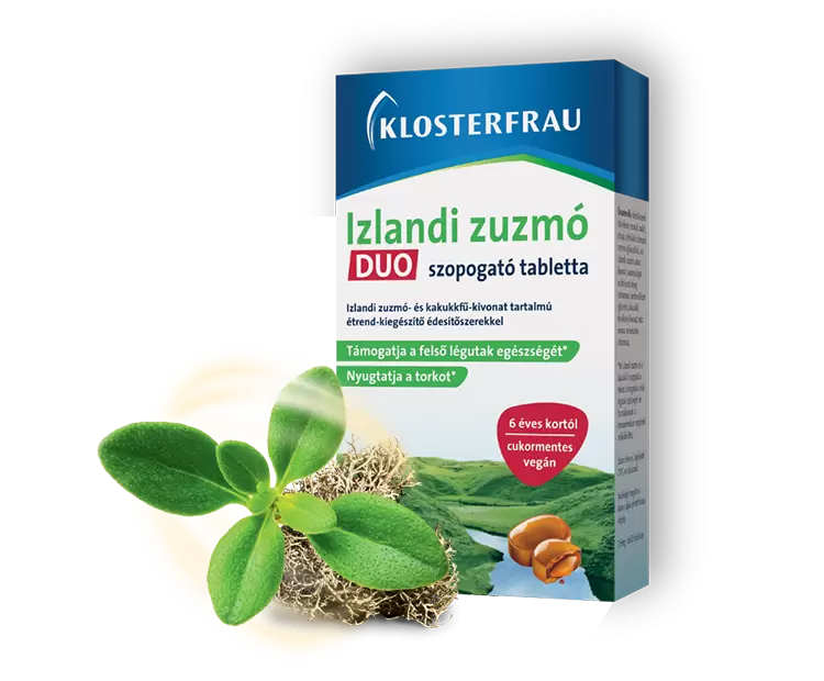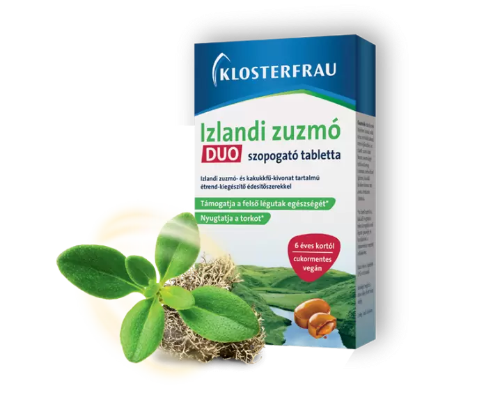 ÚJ Klosterfrau Izlandi zuzmó DUO szopogató tabletta természetes eredetű növényi kivonatokkal!